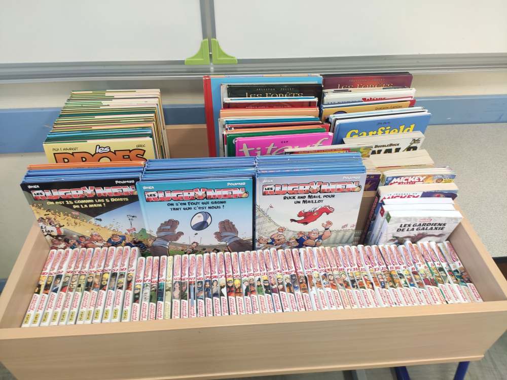 Nos élèves ont eu le plaisir de se voir offrir par l'association des parents d'élèves, un lot de livres ( Bandes dessinées, Mangas etc...) pour la salle d'étude.