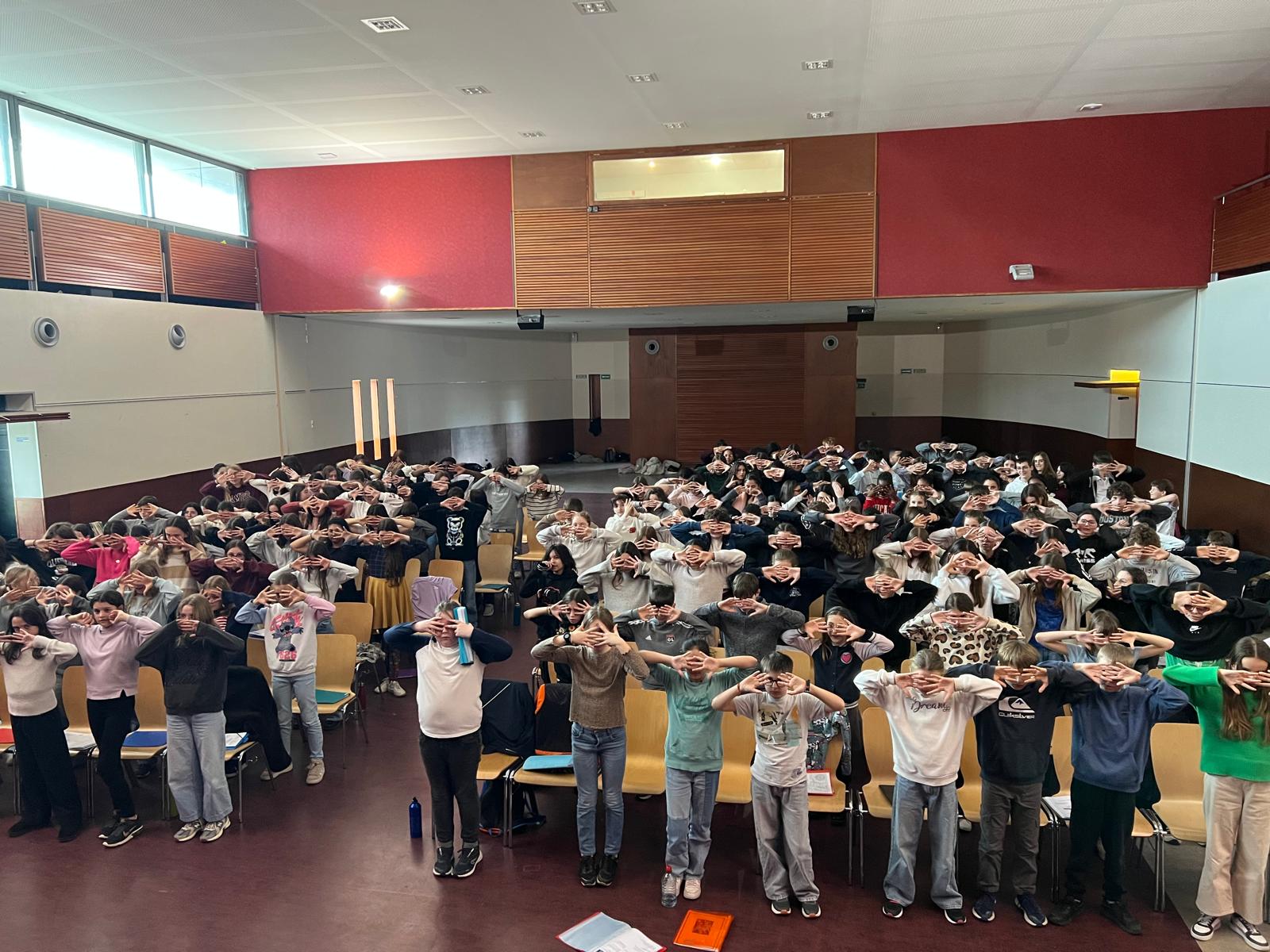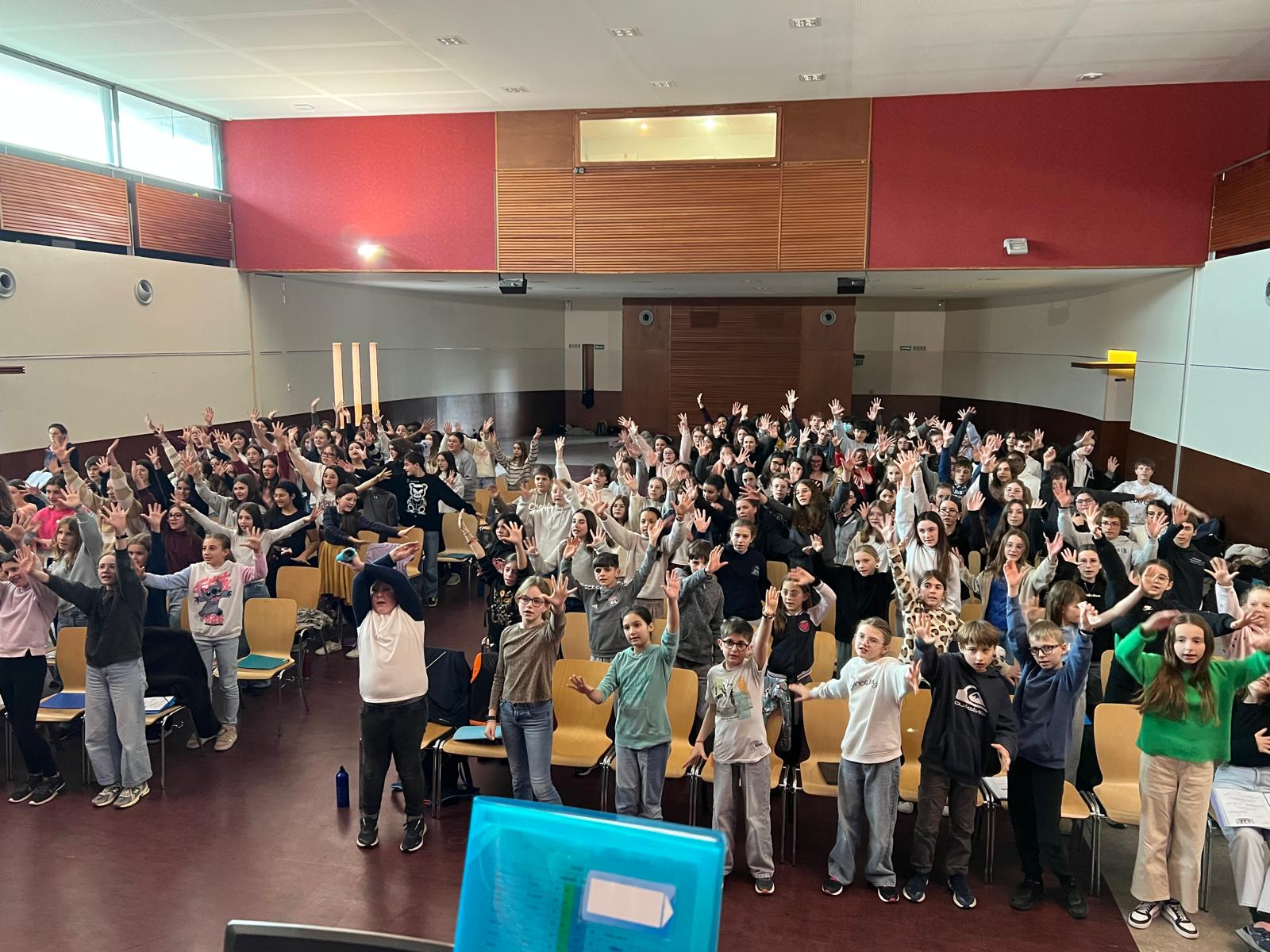 Les élèves de la chorale sont allés répéter vendredi 6 février à Soucieu en Jarrest. C'est la seconde fois que les élèves des 5 collèges préparant le spectacle de fin d'année se rencontrent en musique. Le concert final aura lieu le 4 juin à Chaponnay.